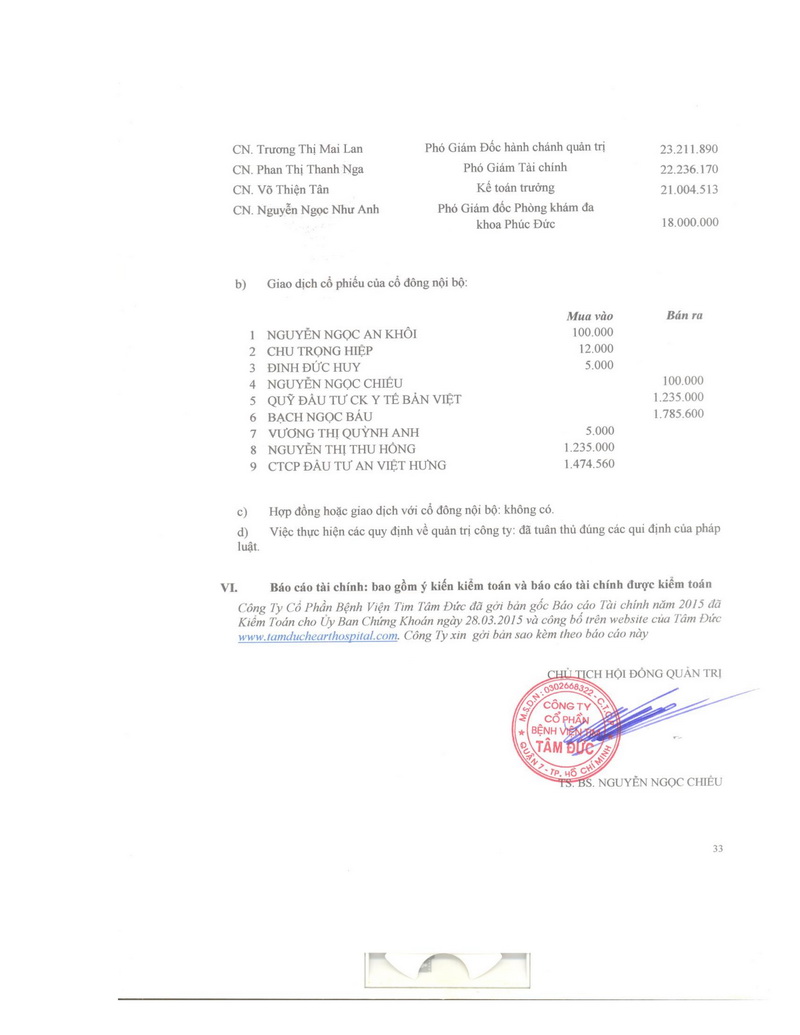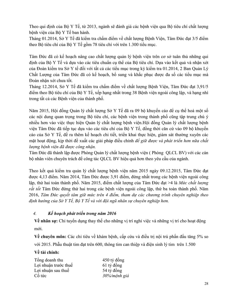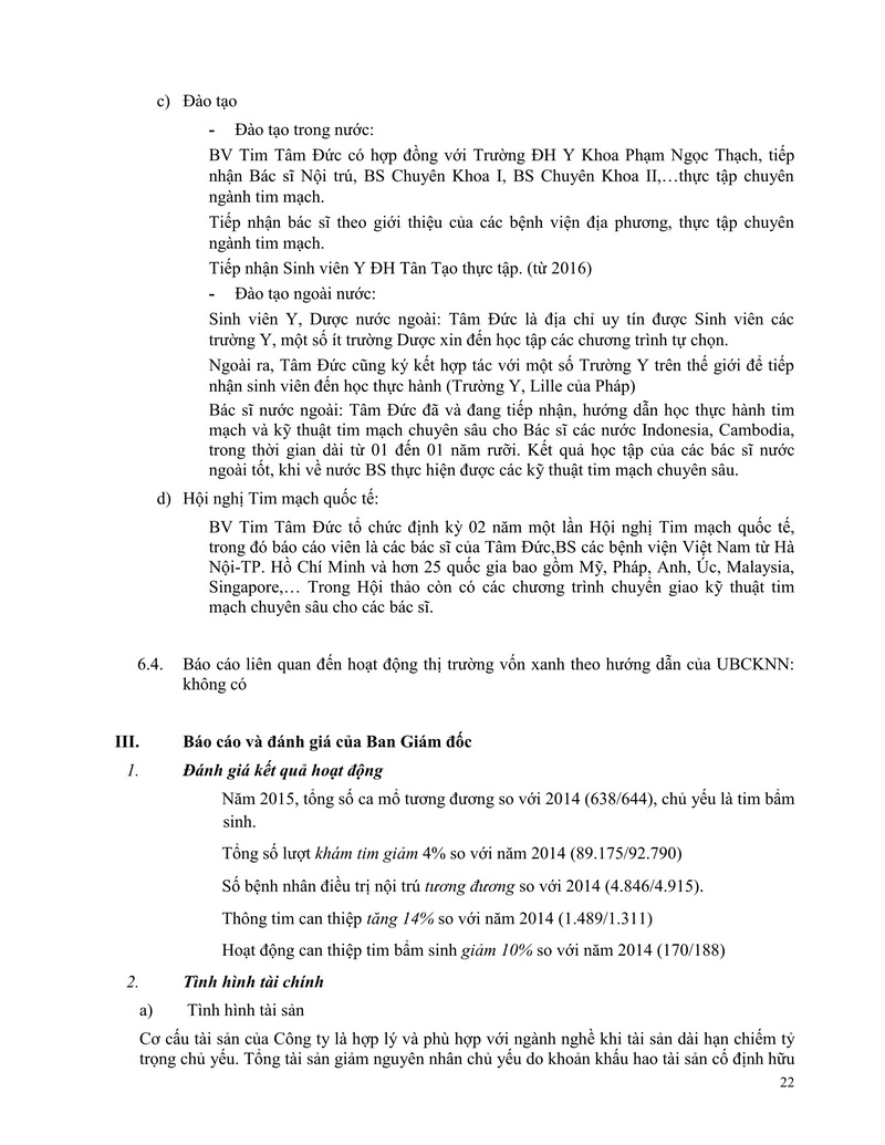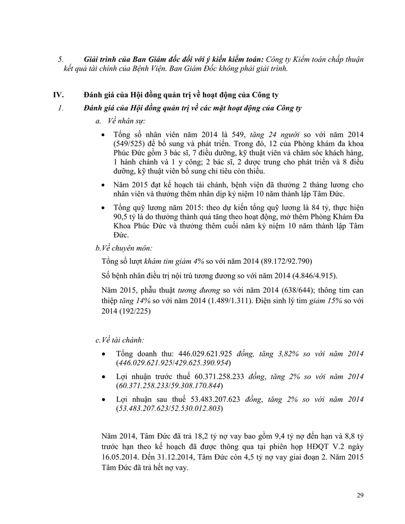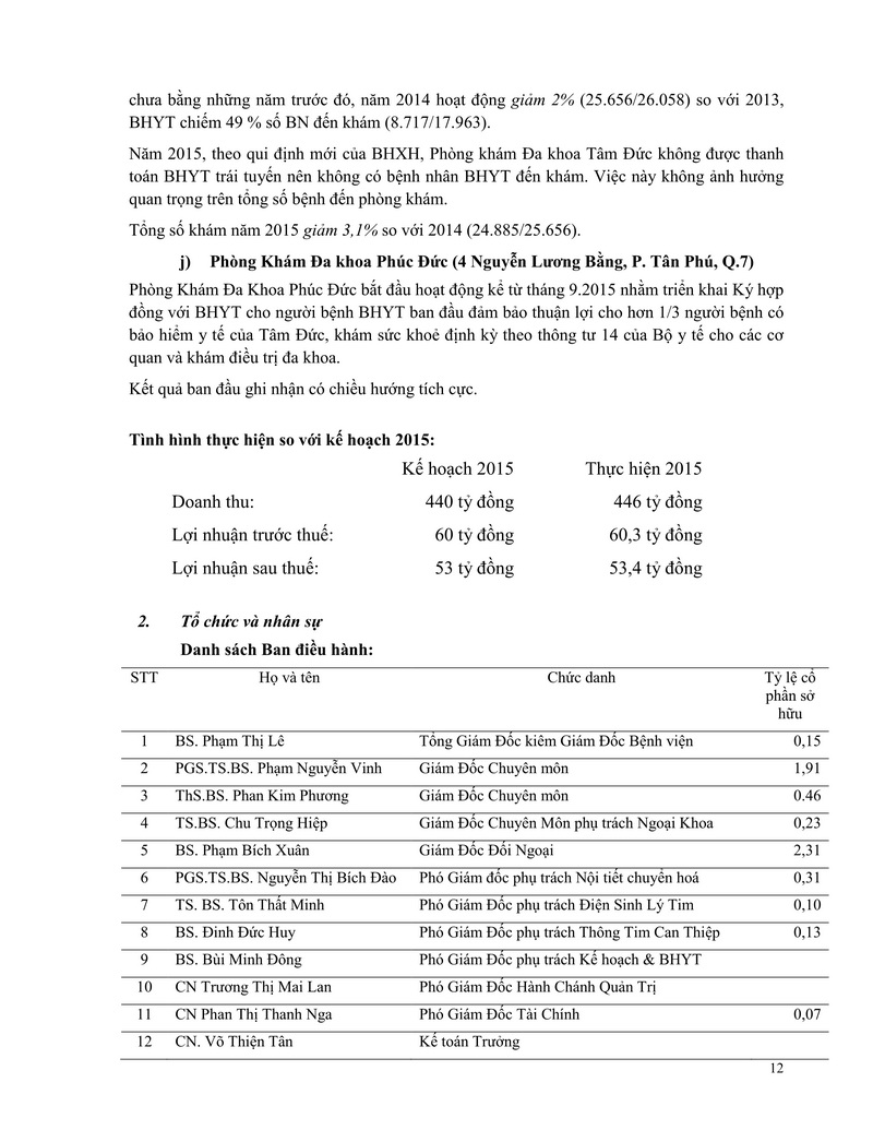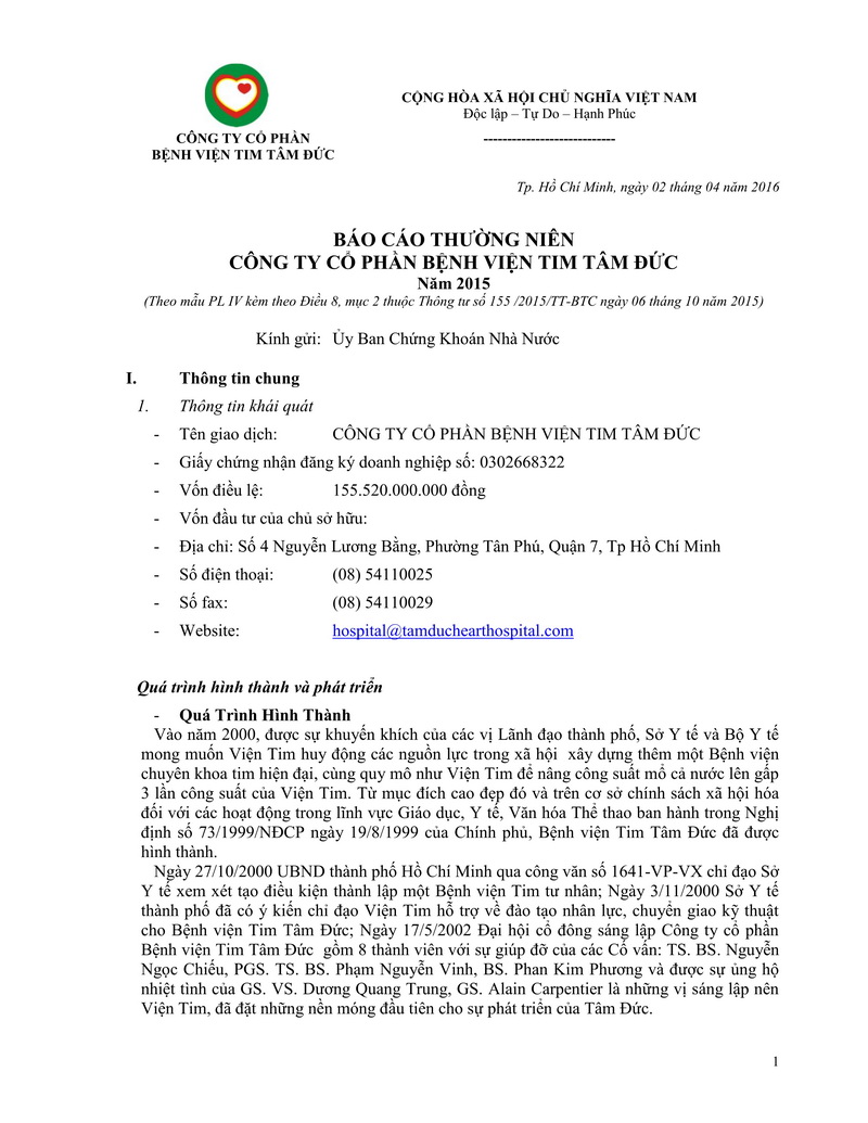 Báo cáo thường niên Công ty cổ phần Bệnh viện Tim Tâm Đức 2015 theo mẫu PL IV