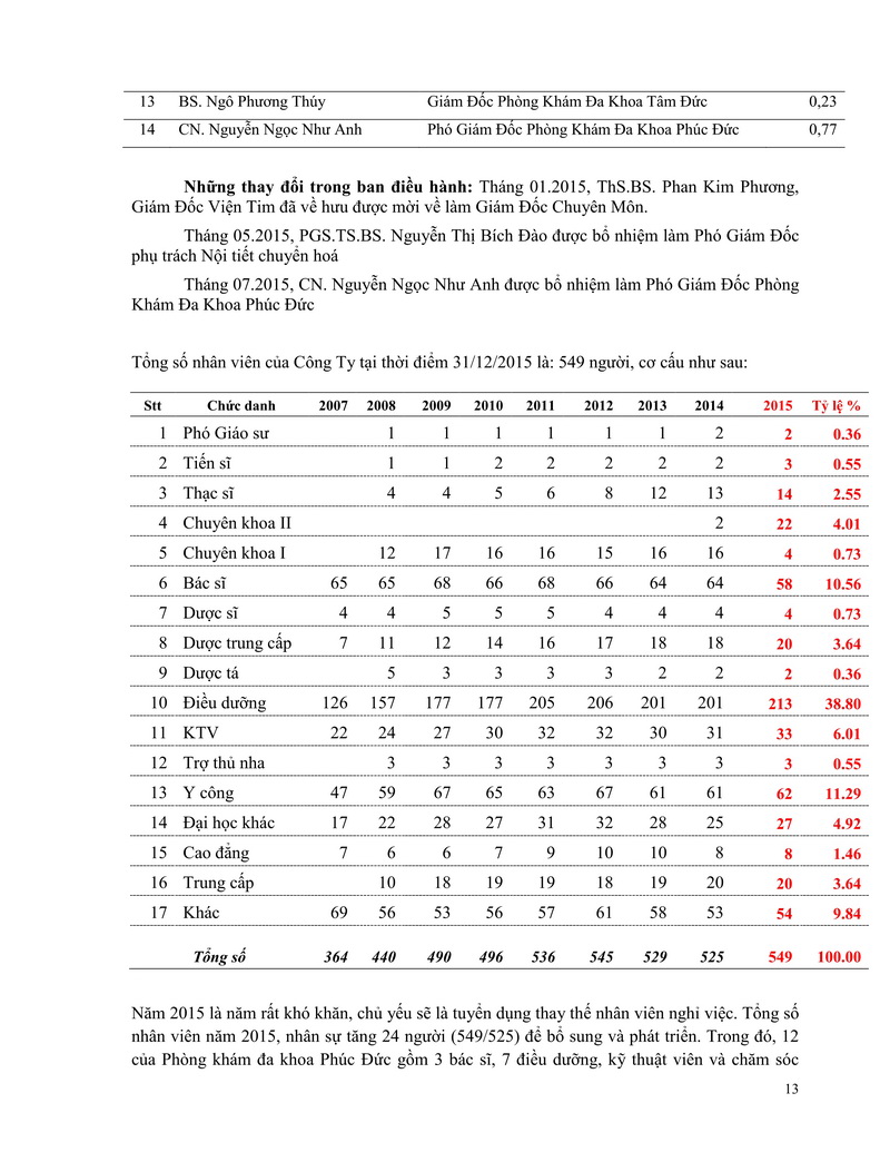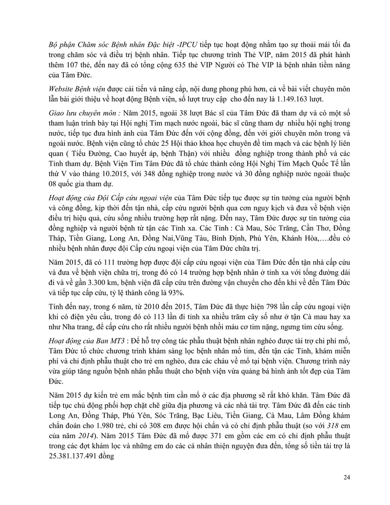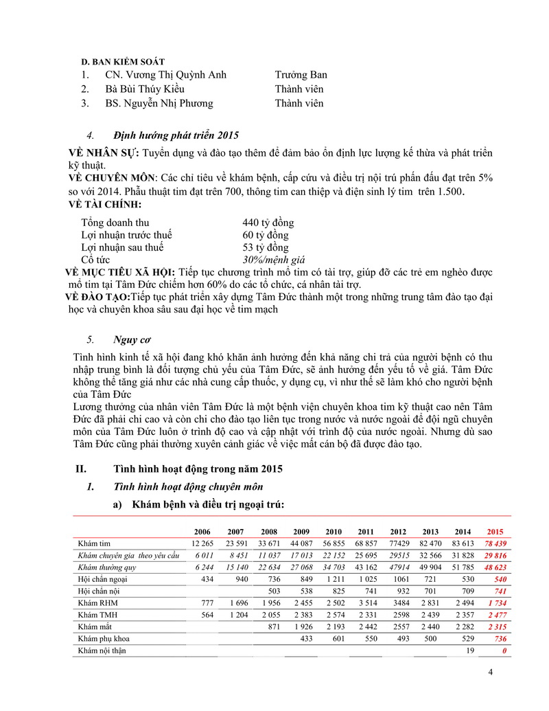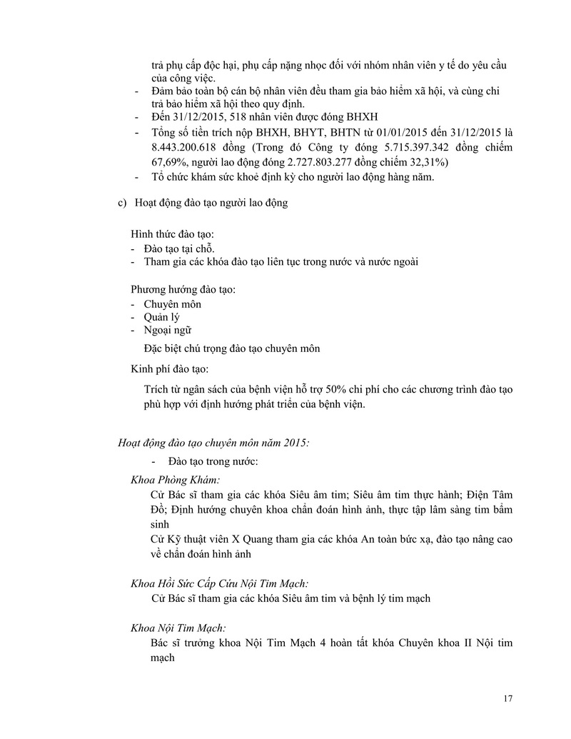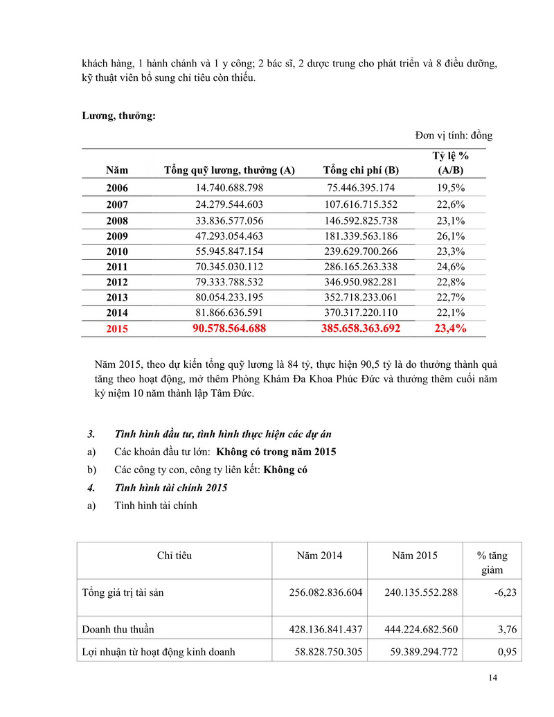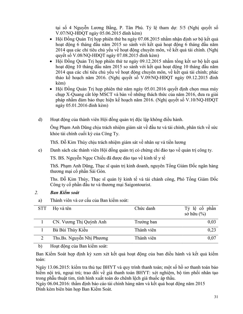 Báo cáo thường niên Công ty cổ phần Bệnh viện Tim Tâm Đức 2015 theo mẫu PL IV