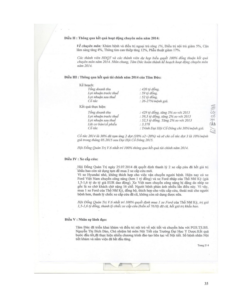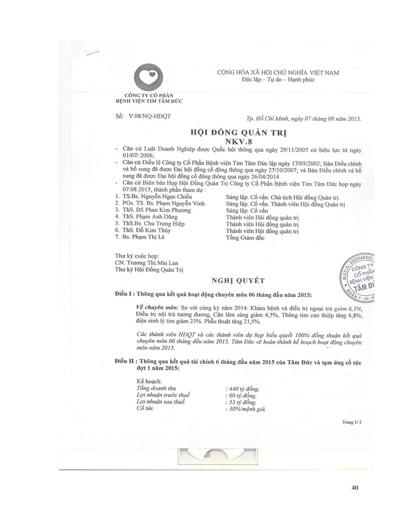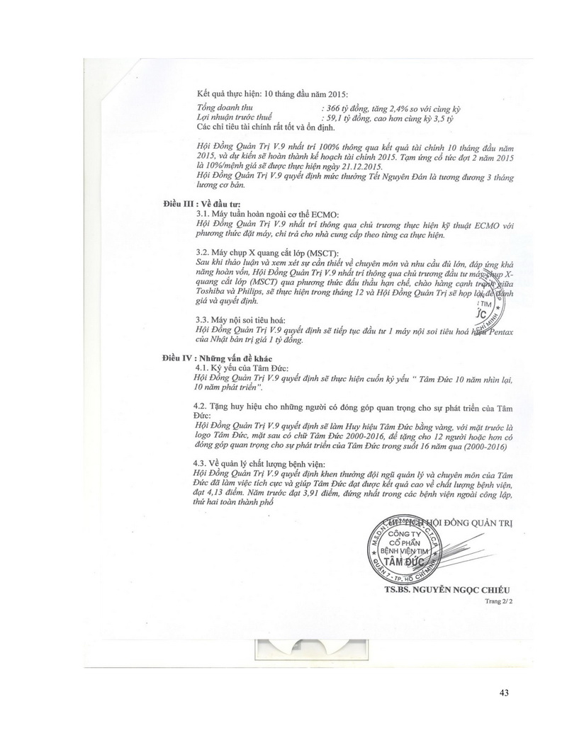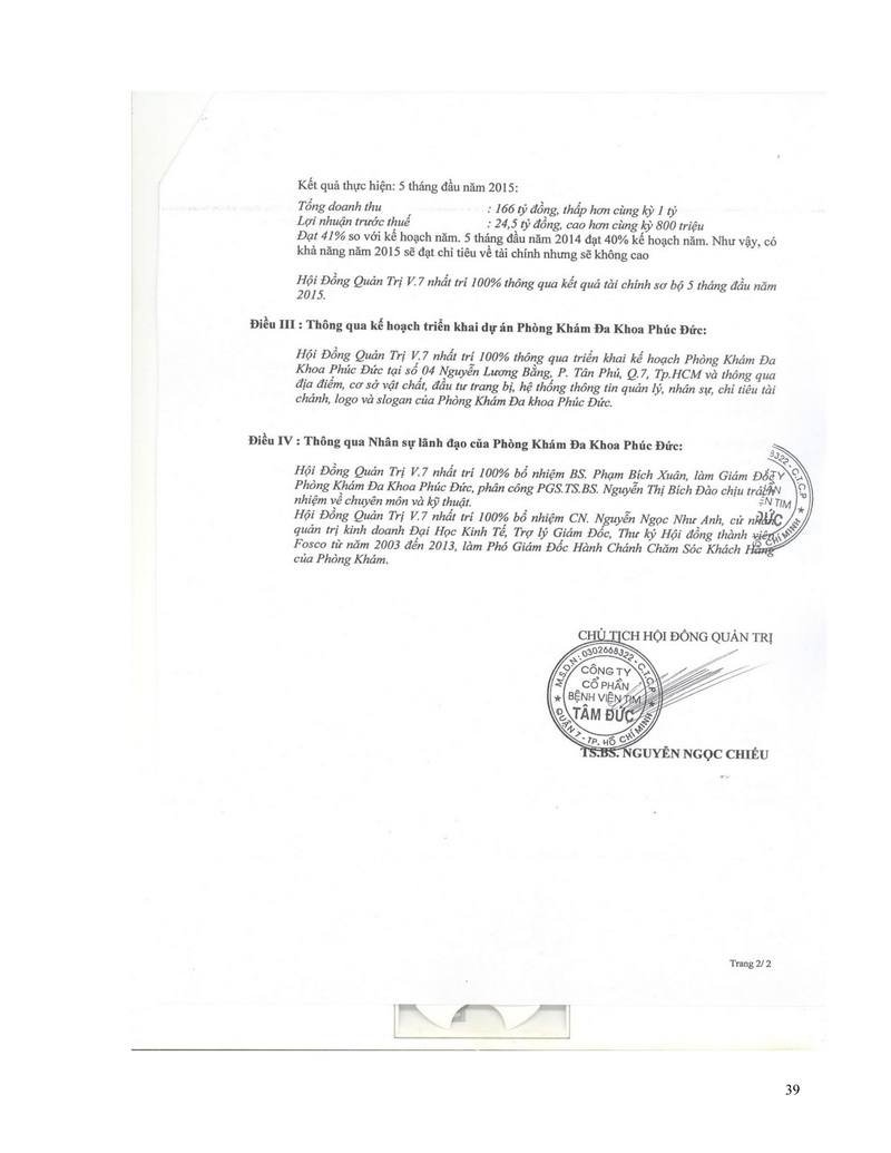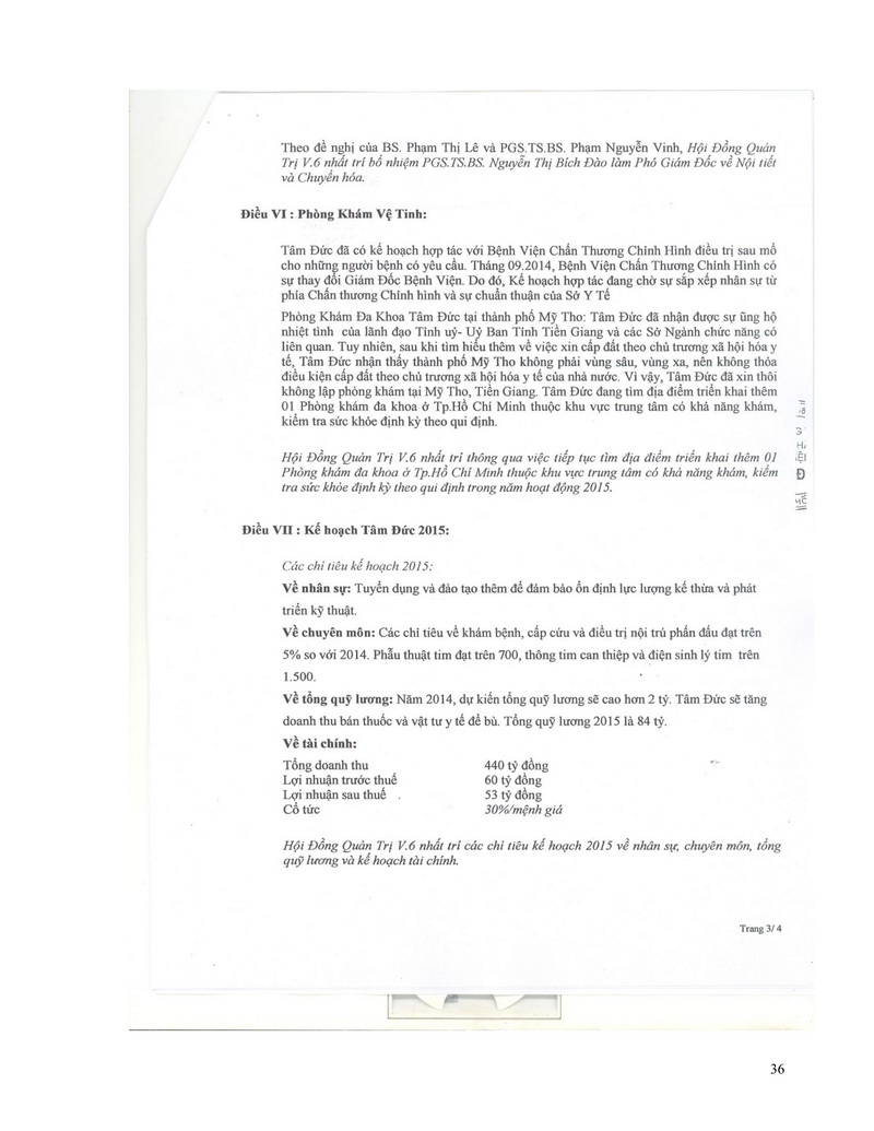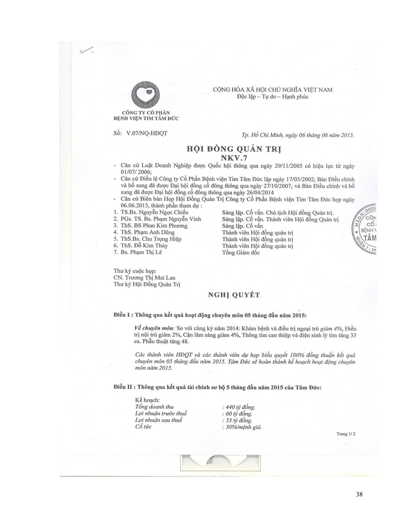 Báo cáo thường niên Công ty cổ phần Bệnh viện Tim Tâm Đức 2015 theo mẫu PL IV