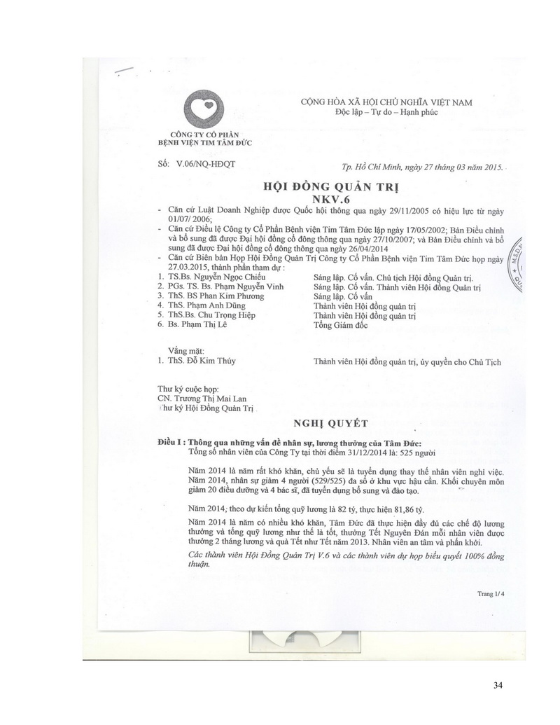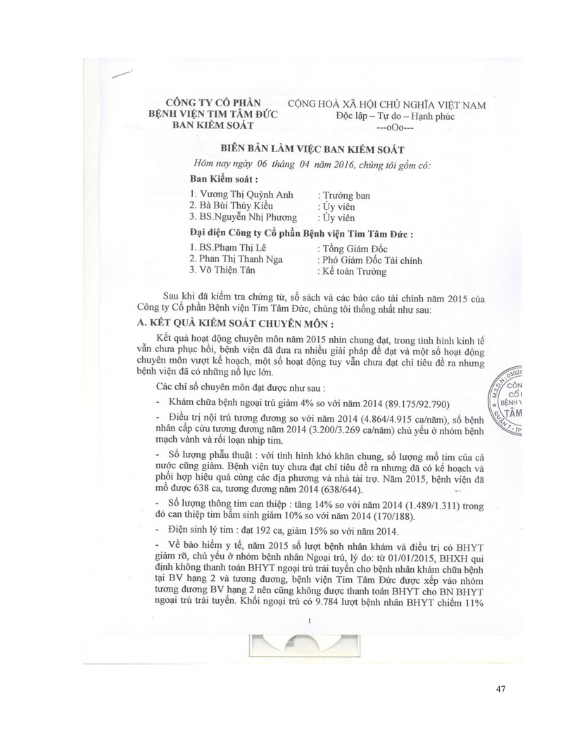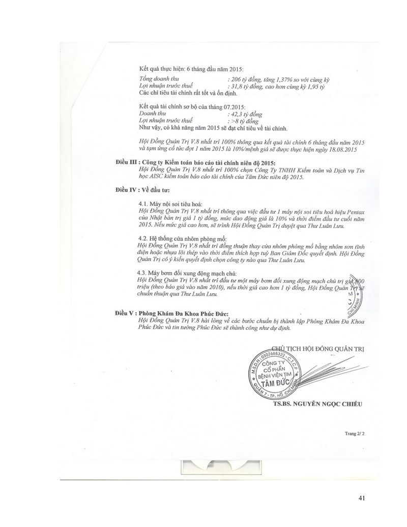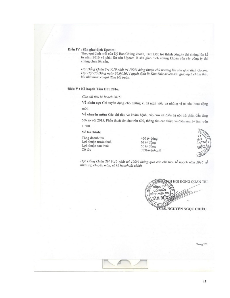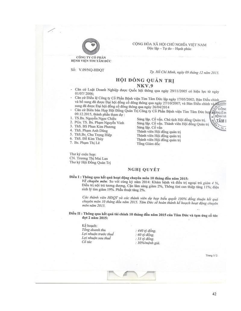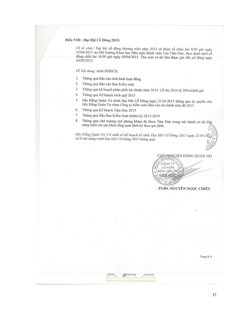 Báo cáo thường niên Công ty cổ phần Bệnh viện Tim Tâm Đức 2015 theo mẫu PL IV