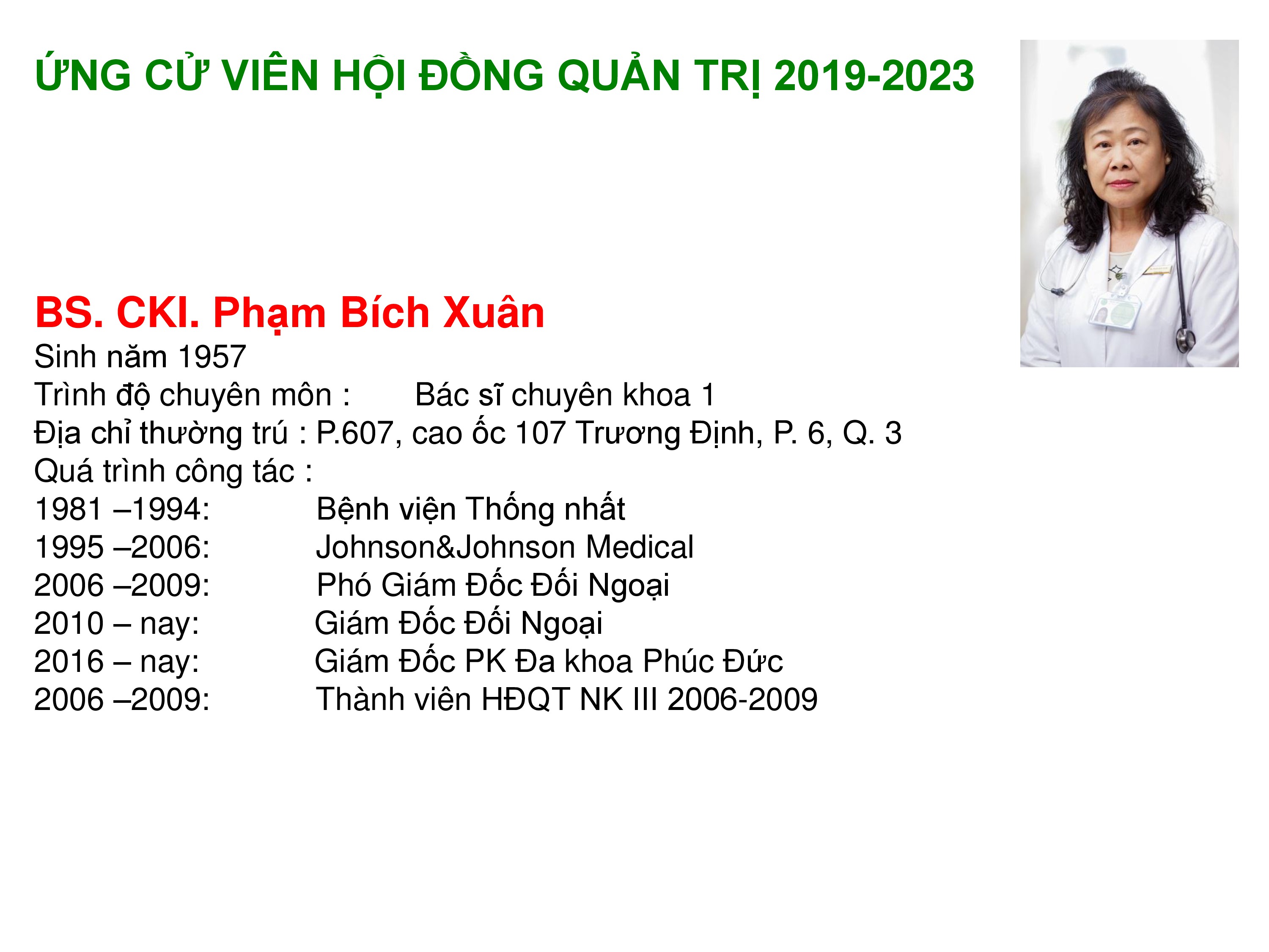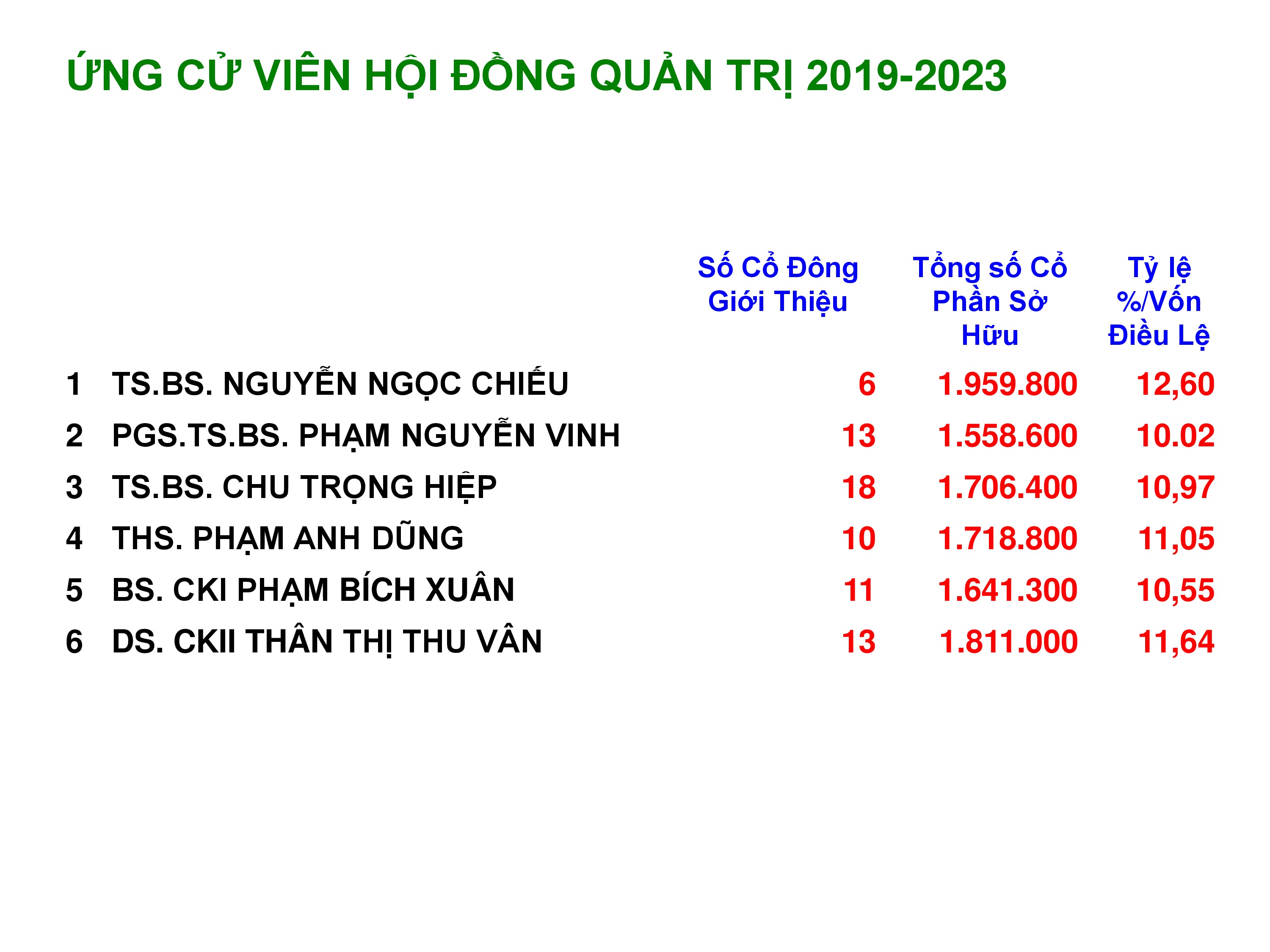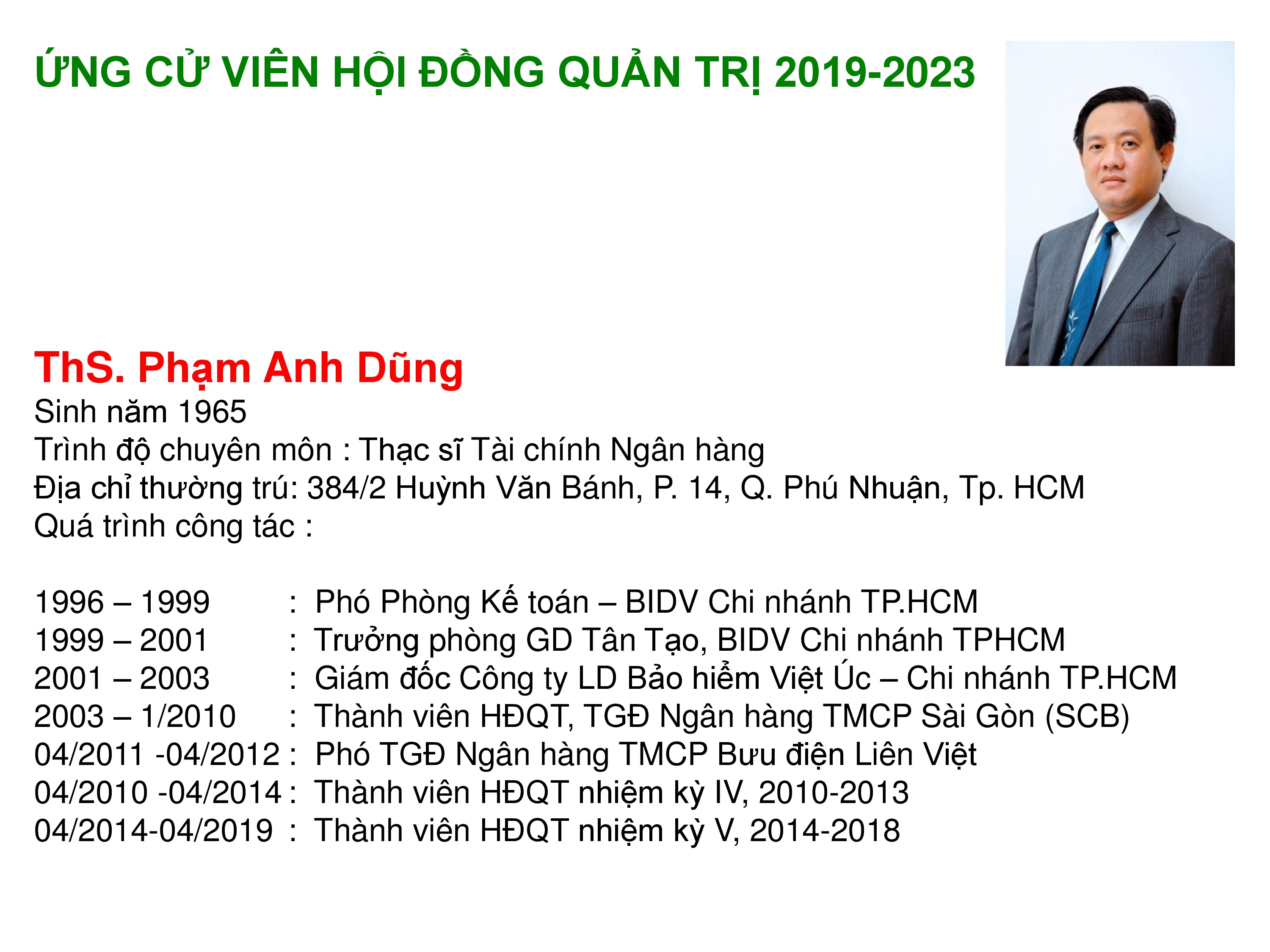 Công bố thông tin về sơ yếu lý lịch ứng cử viên HĐQT 2019-2023