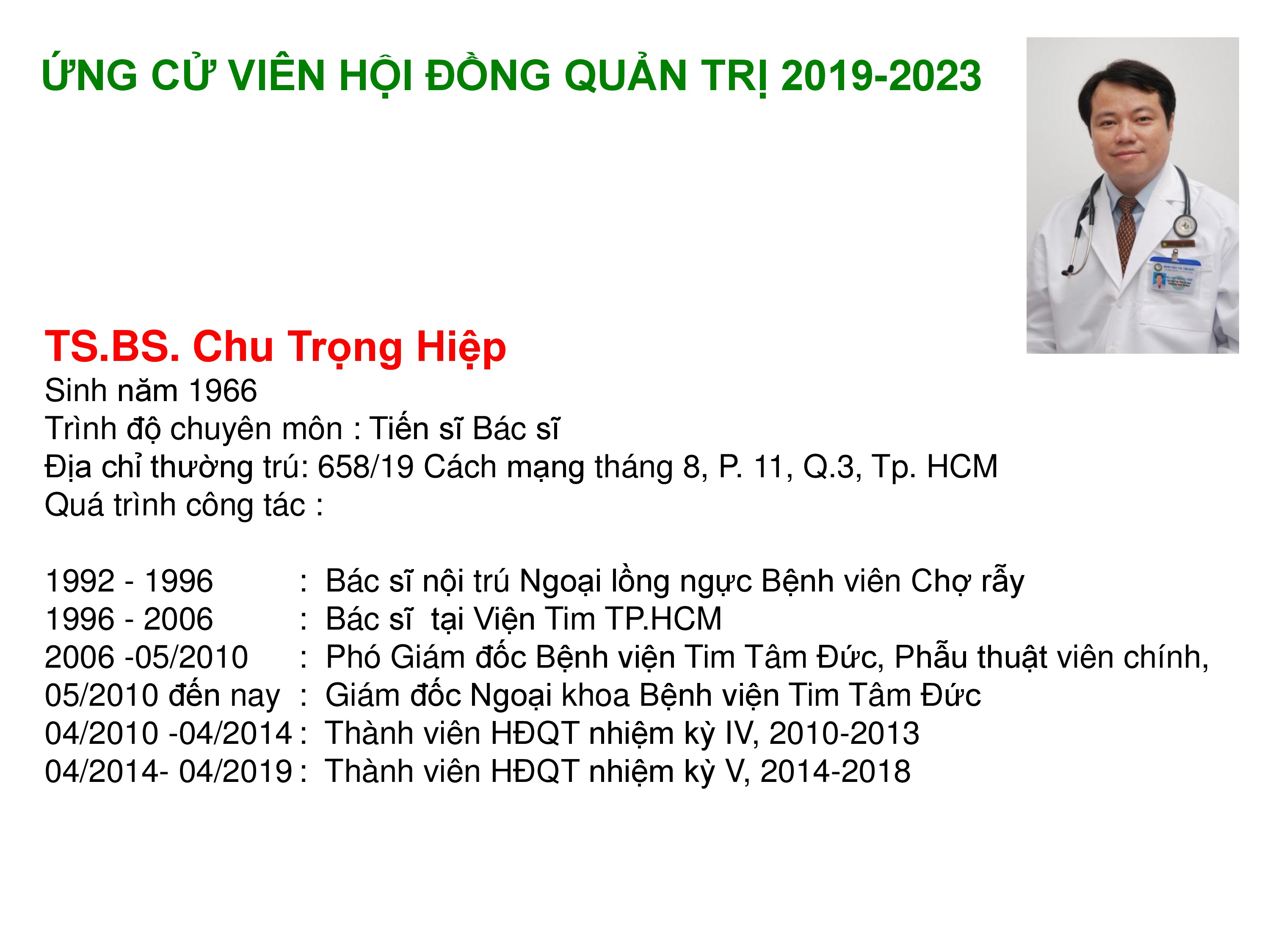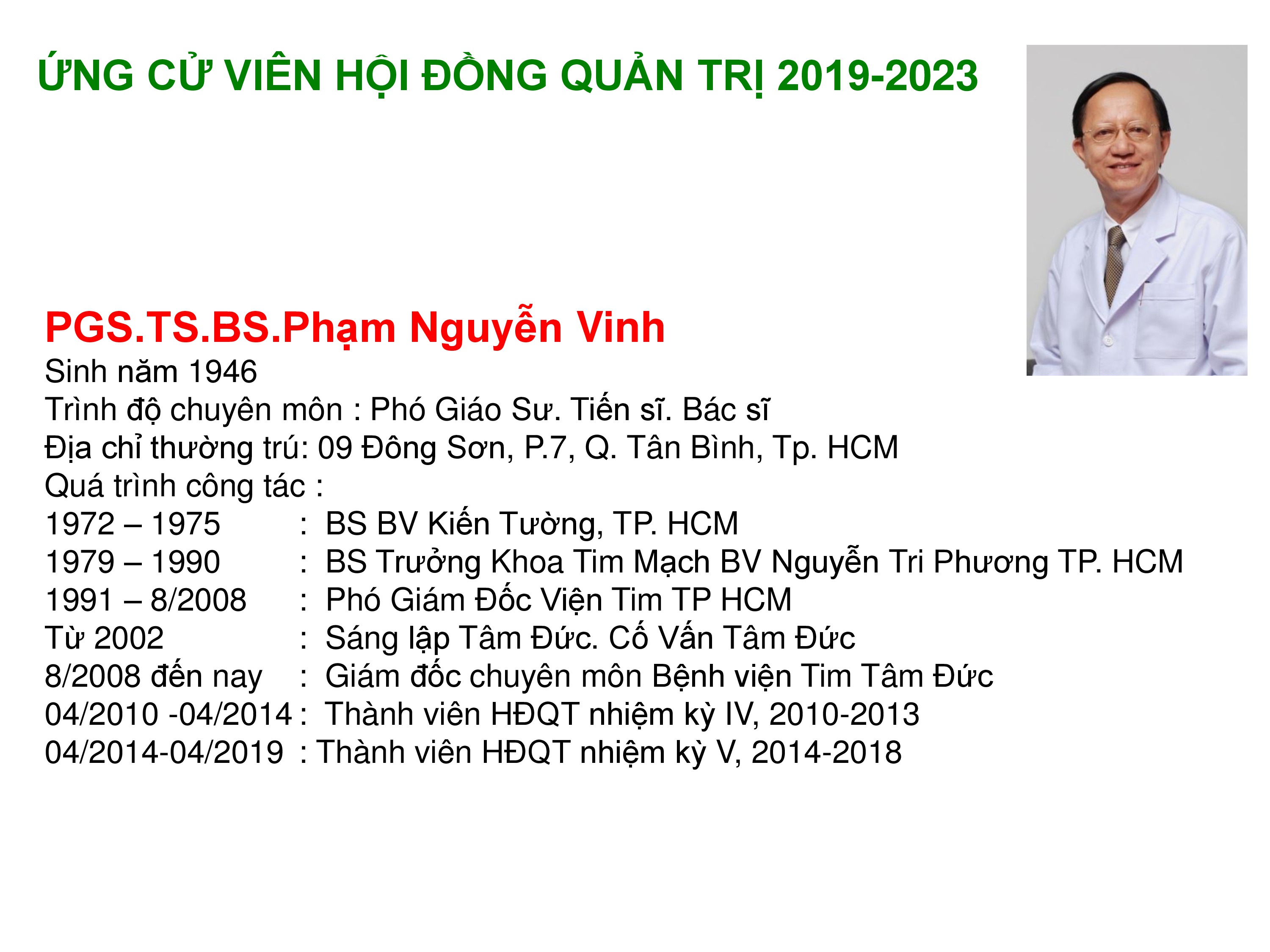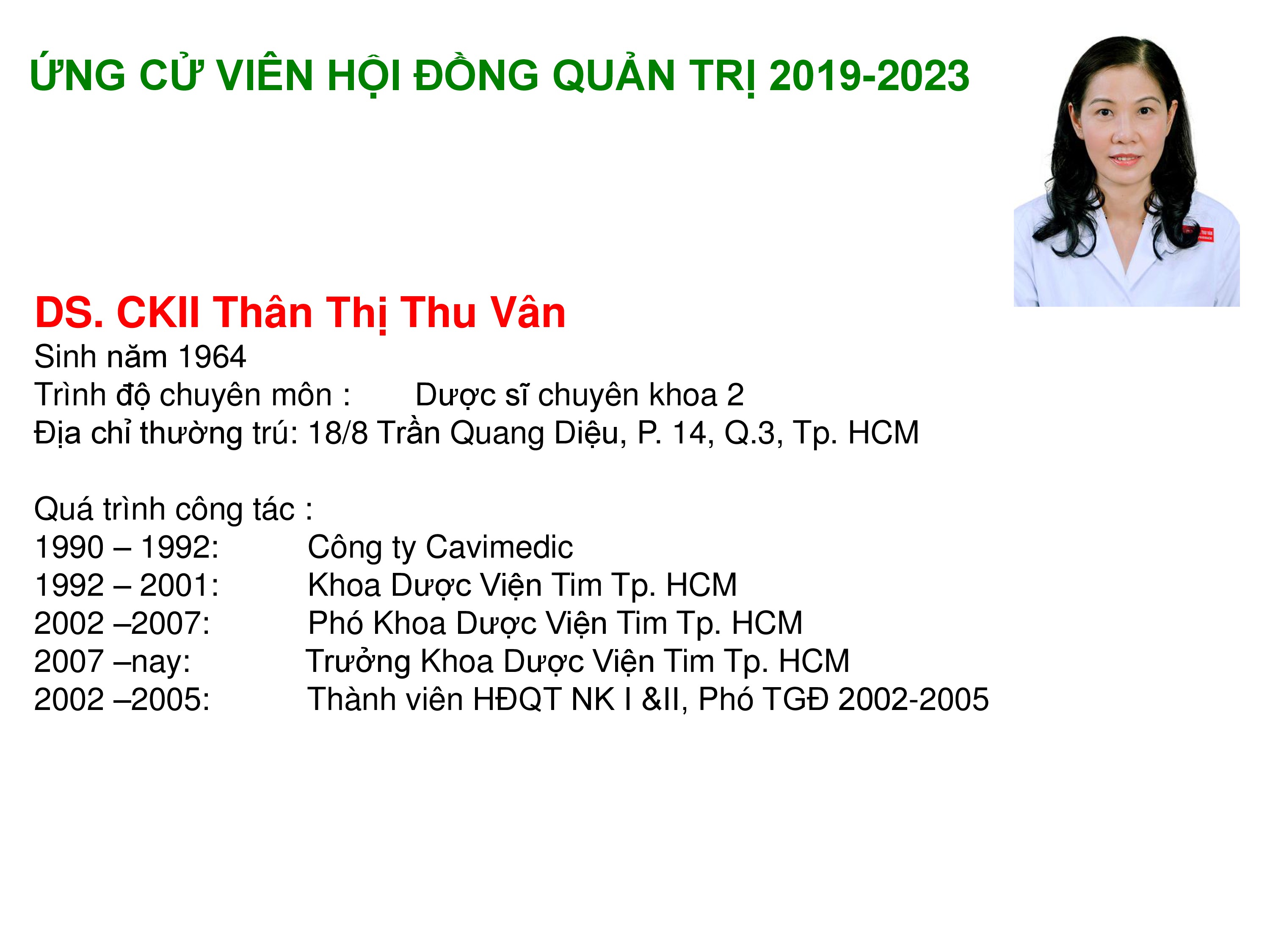 Công bố thông tin về sơ yếu lý lịch ứng cử viên HĐQT 2019-2023