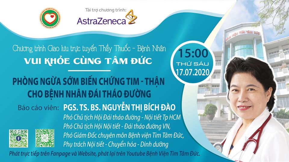 Và phát lại trên kênh Youtube Bệnh Viện Tim Tâm Đức. Kính mời quý khán giả đón xem và đặt câu hỏi để được PGS. TS. BS. Nguyễn Thị Bích Đào giải đáp.