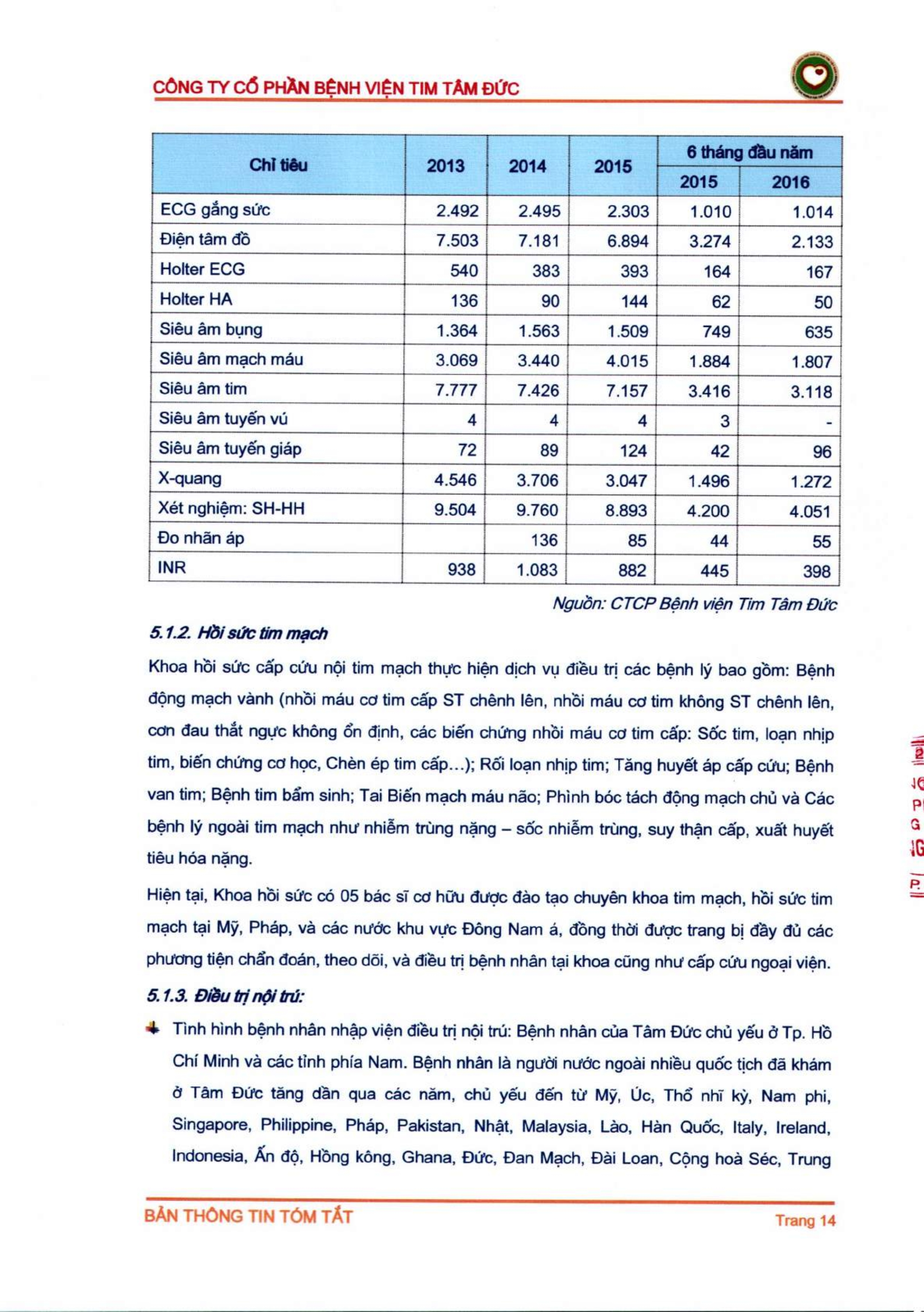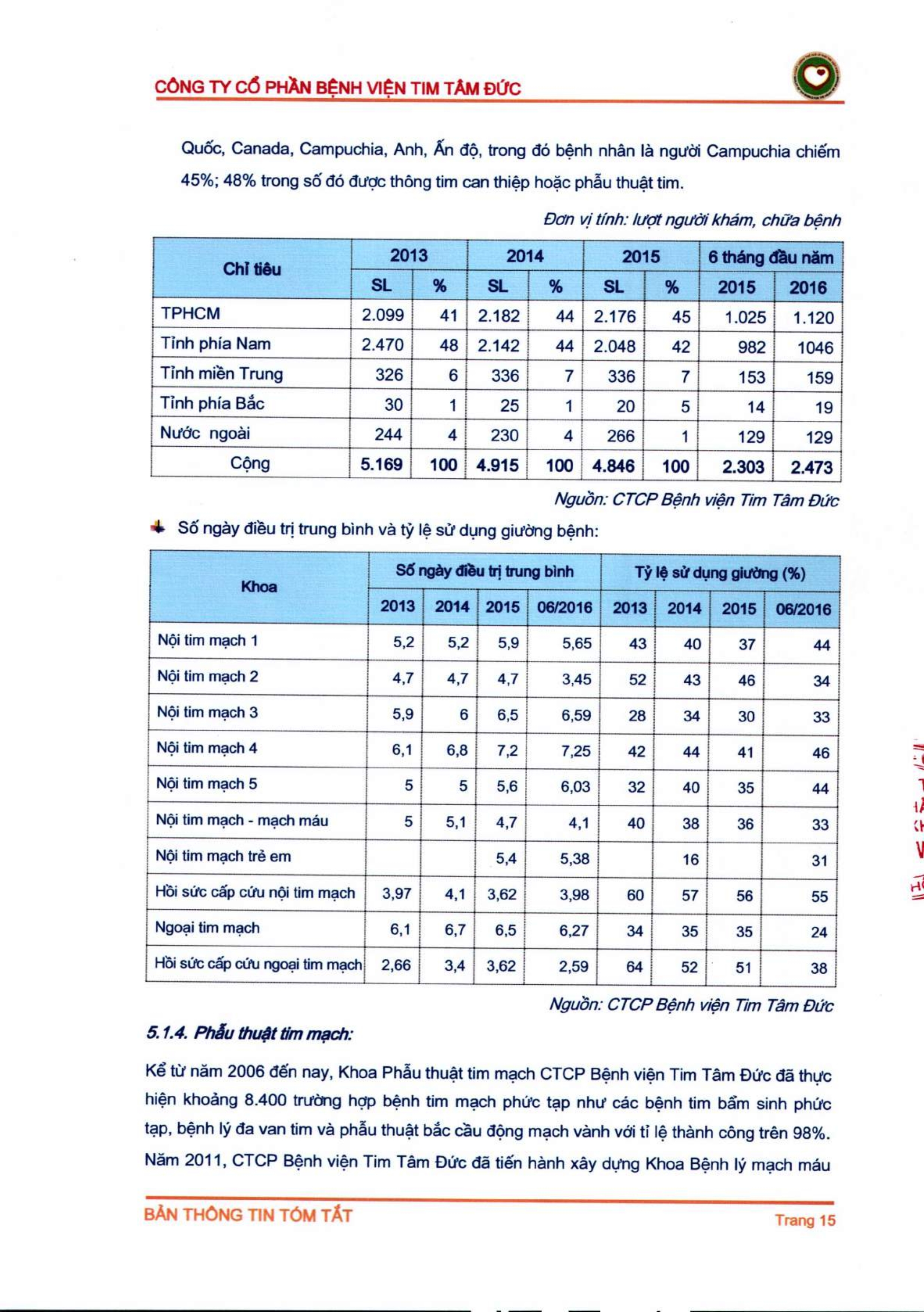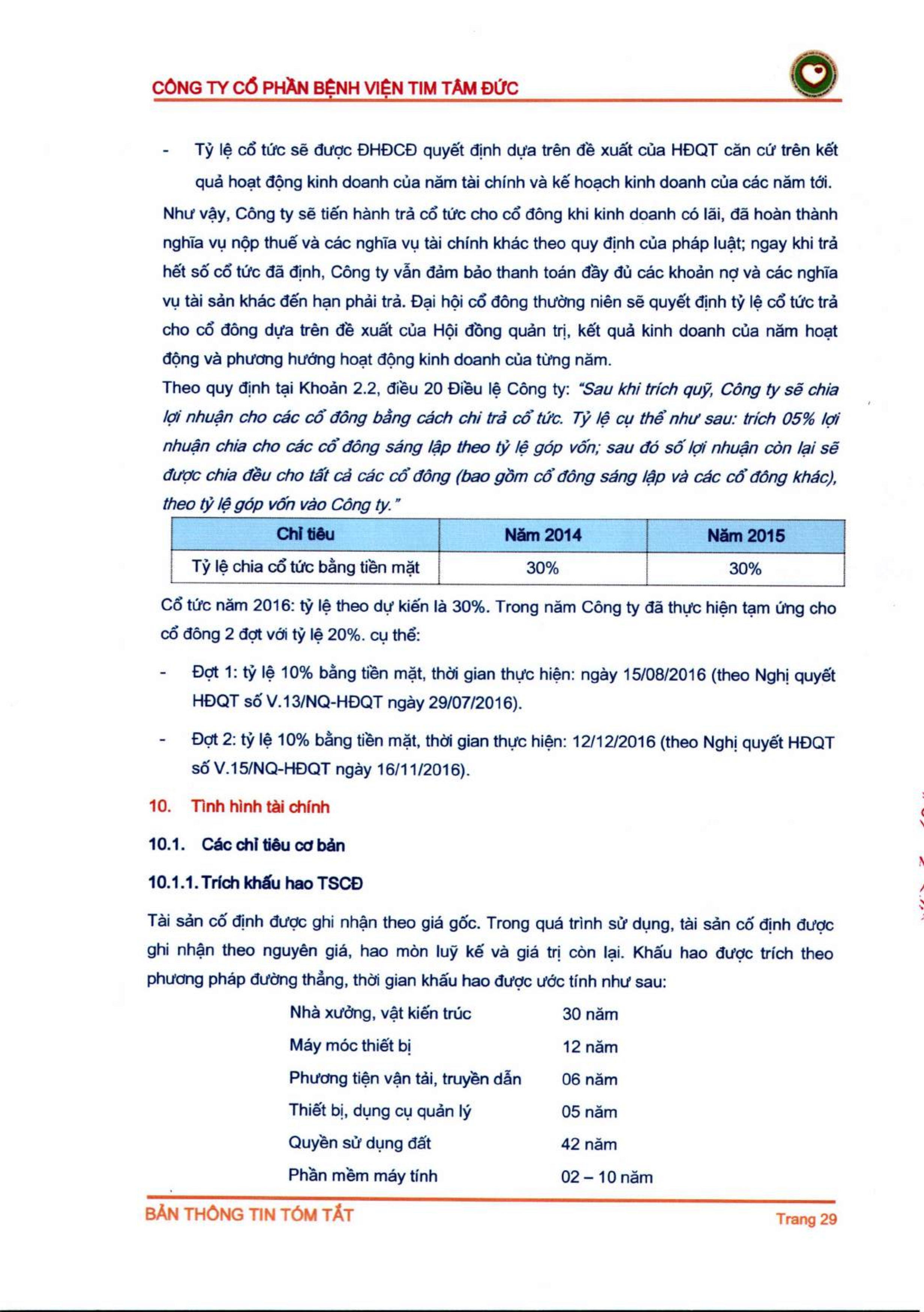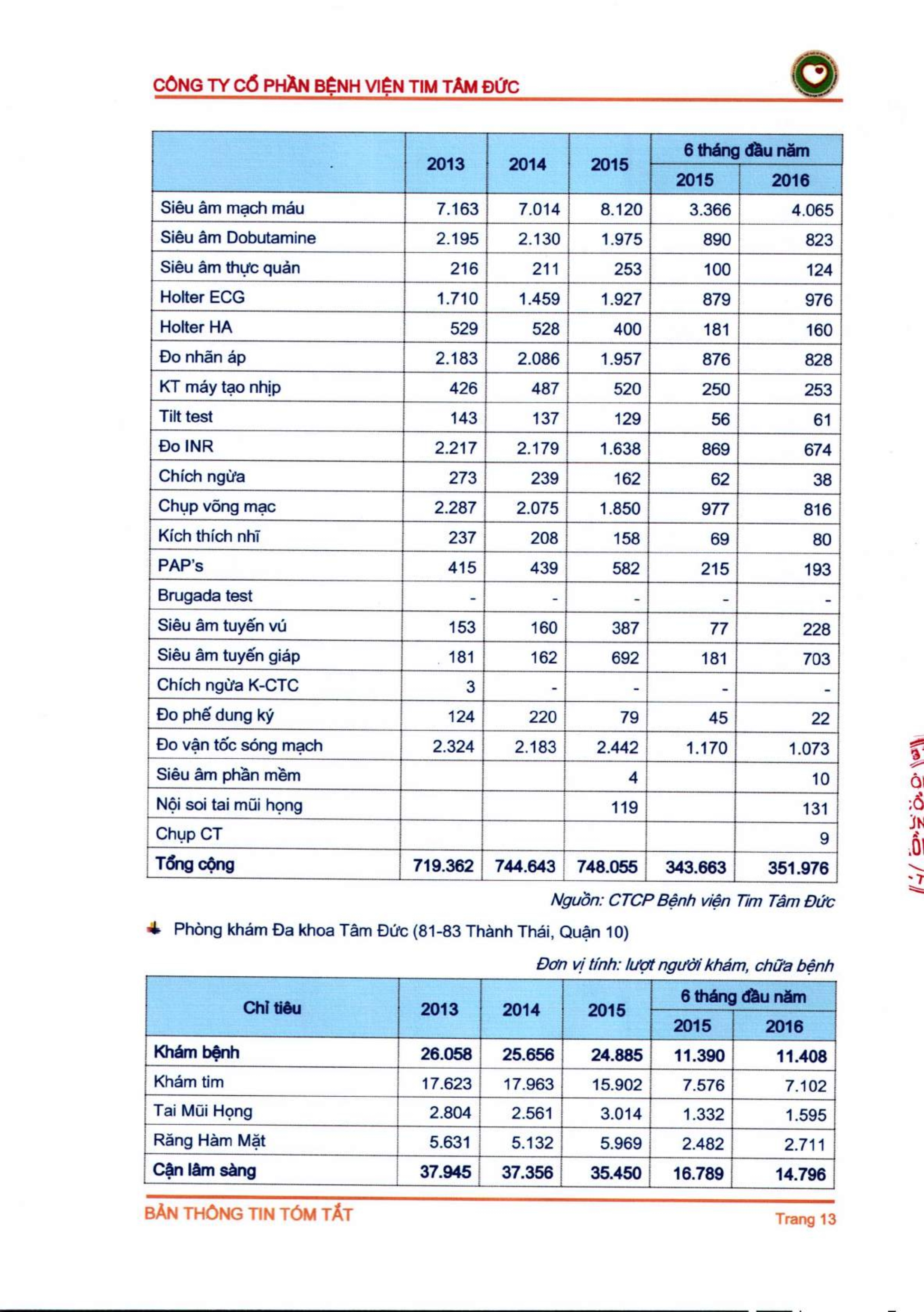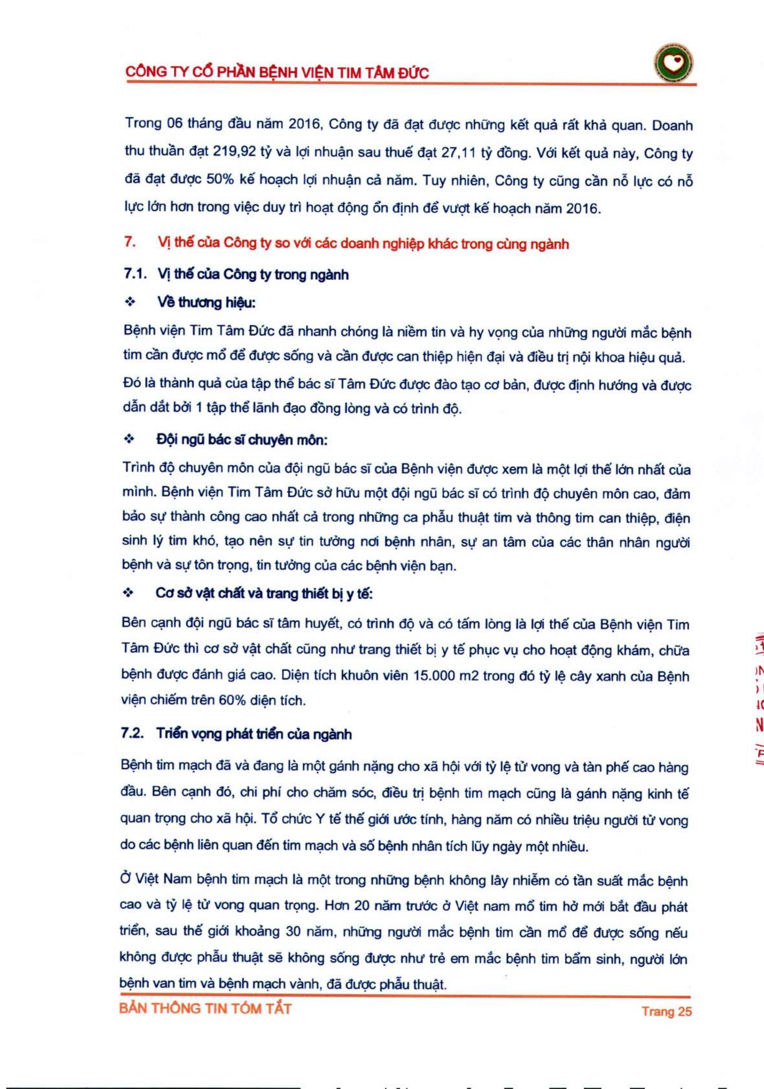 Thông tin tóm tắt về tổ chức đăng ký giao dịch Công ty CP Bệnh viện Tim Tâm Đức