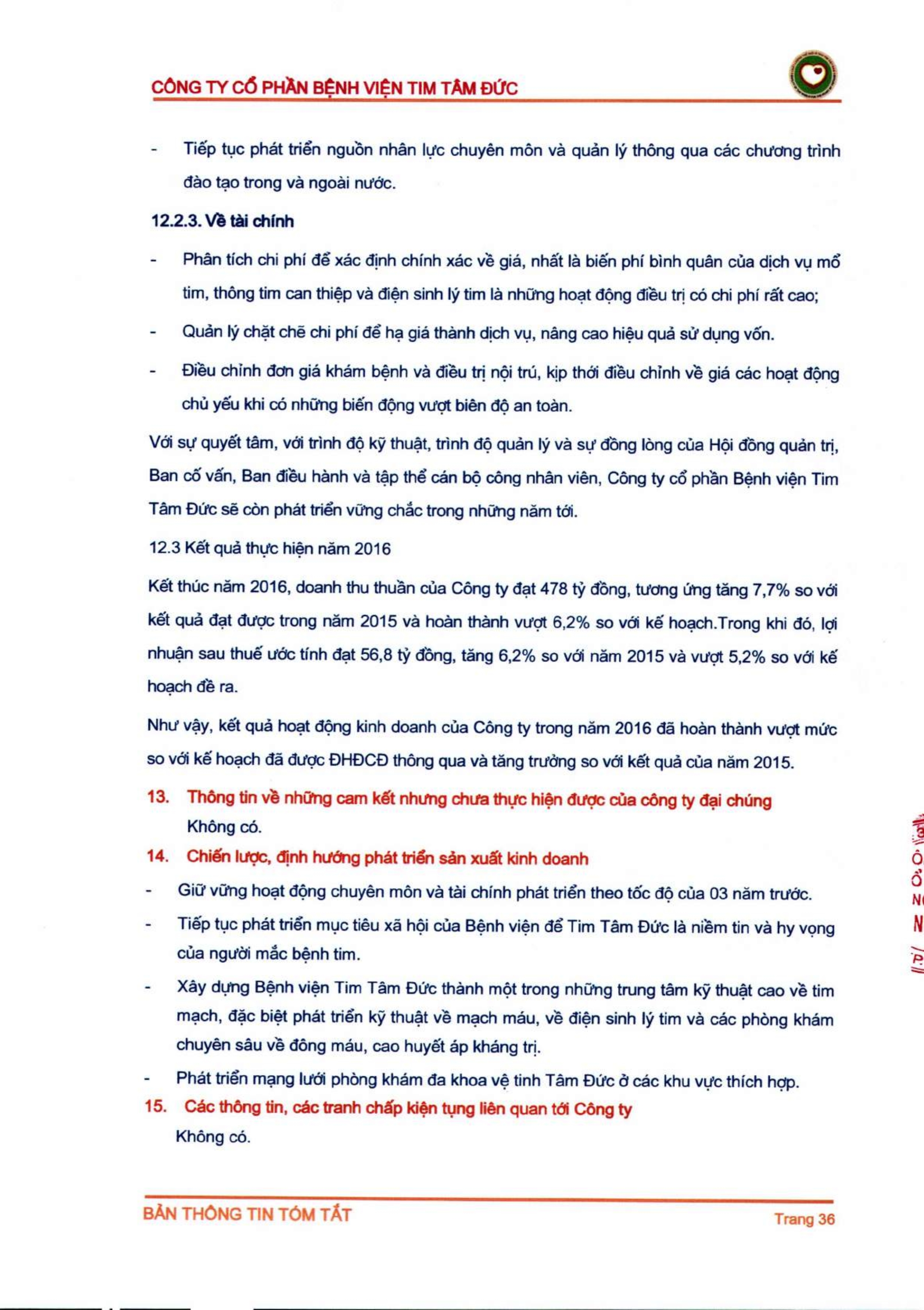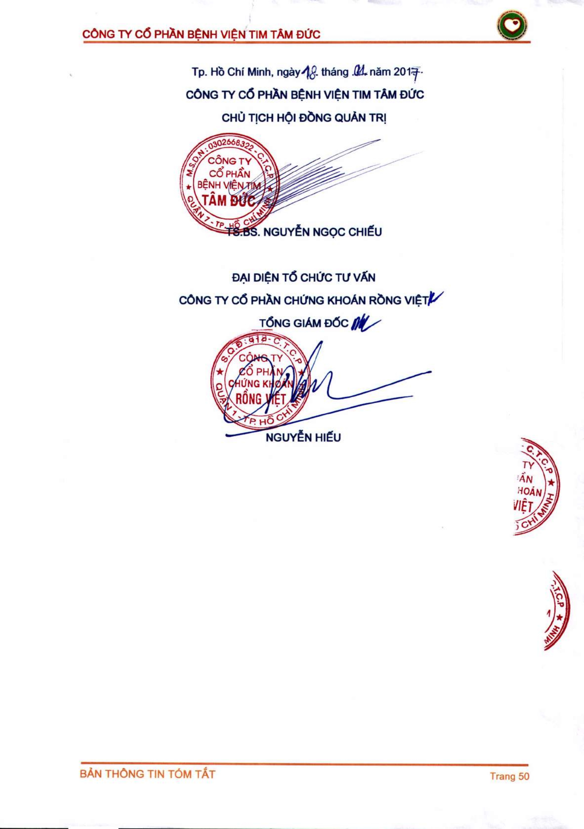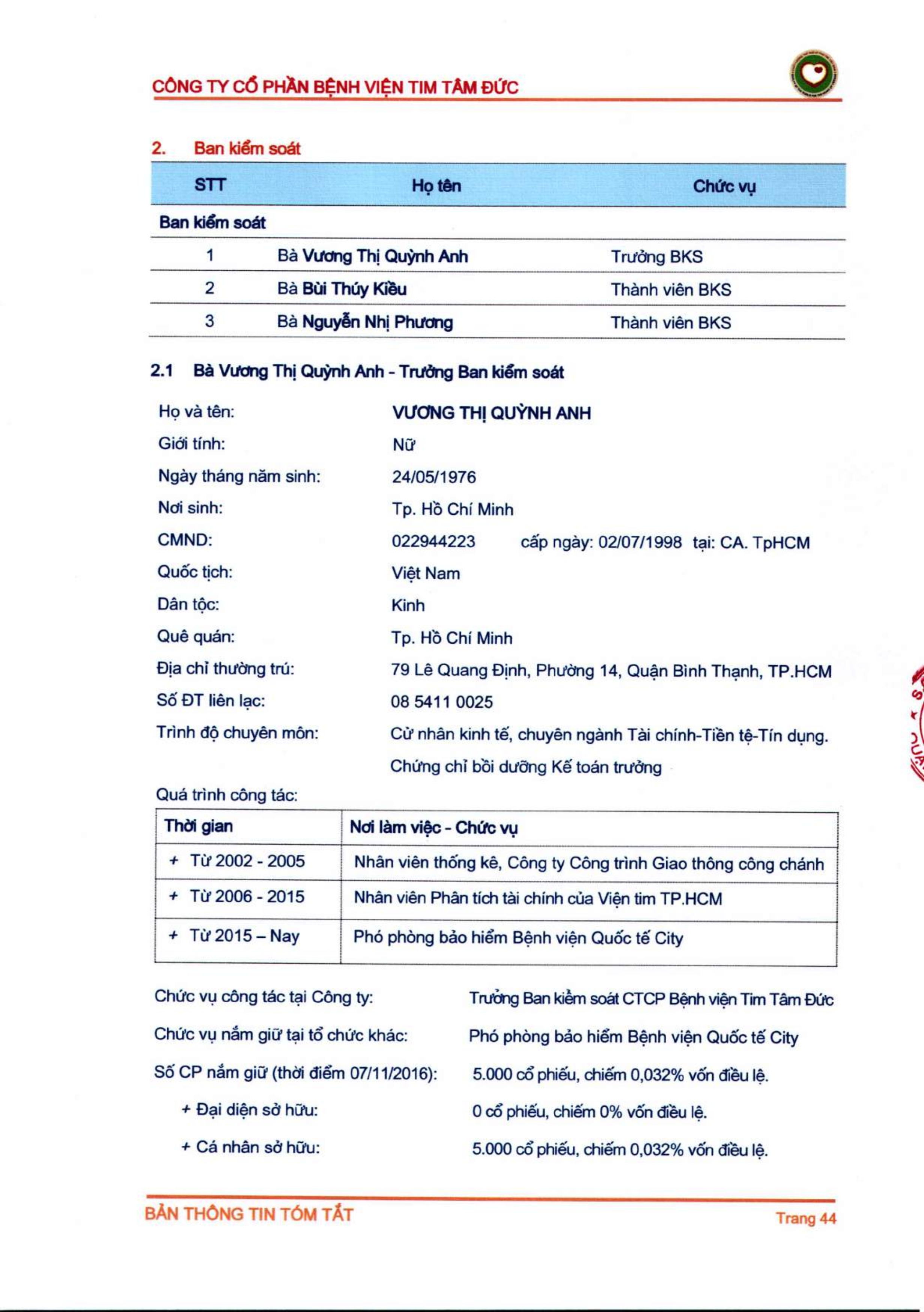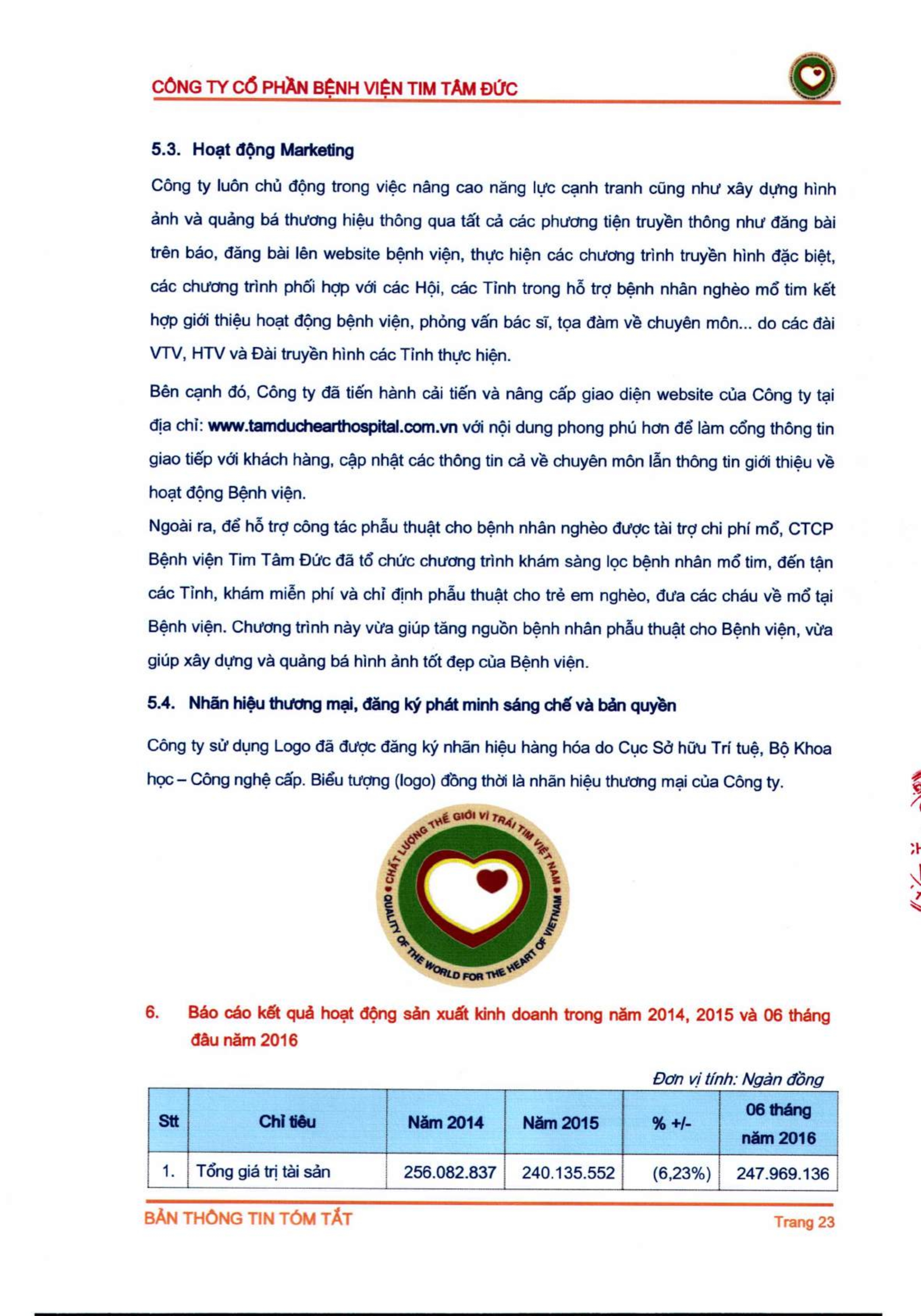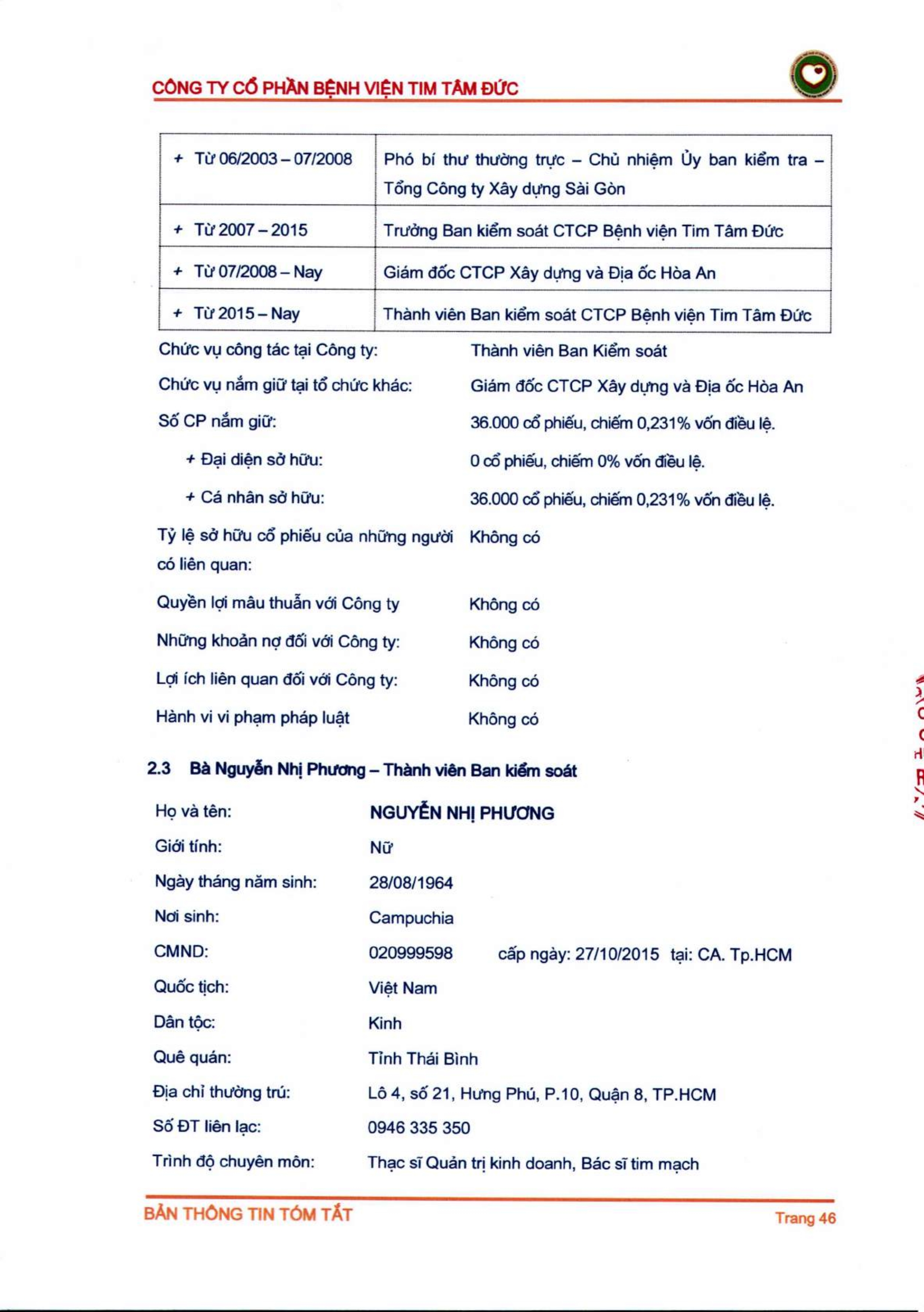 Thông tin tóm tắt về tổ chức đăng ký giao dịch Công ty CP Bệnh viện Tim Tâm Đức