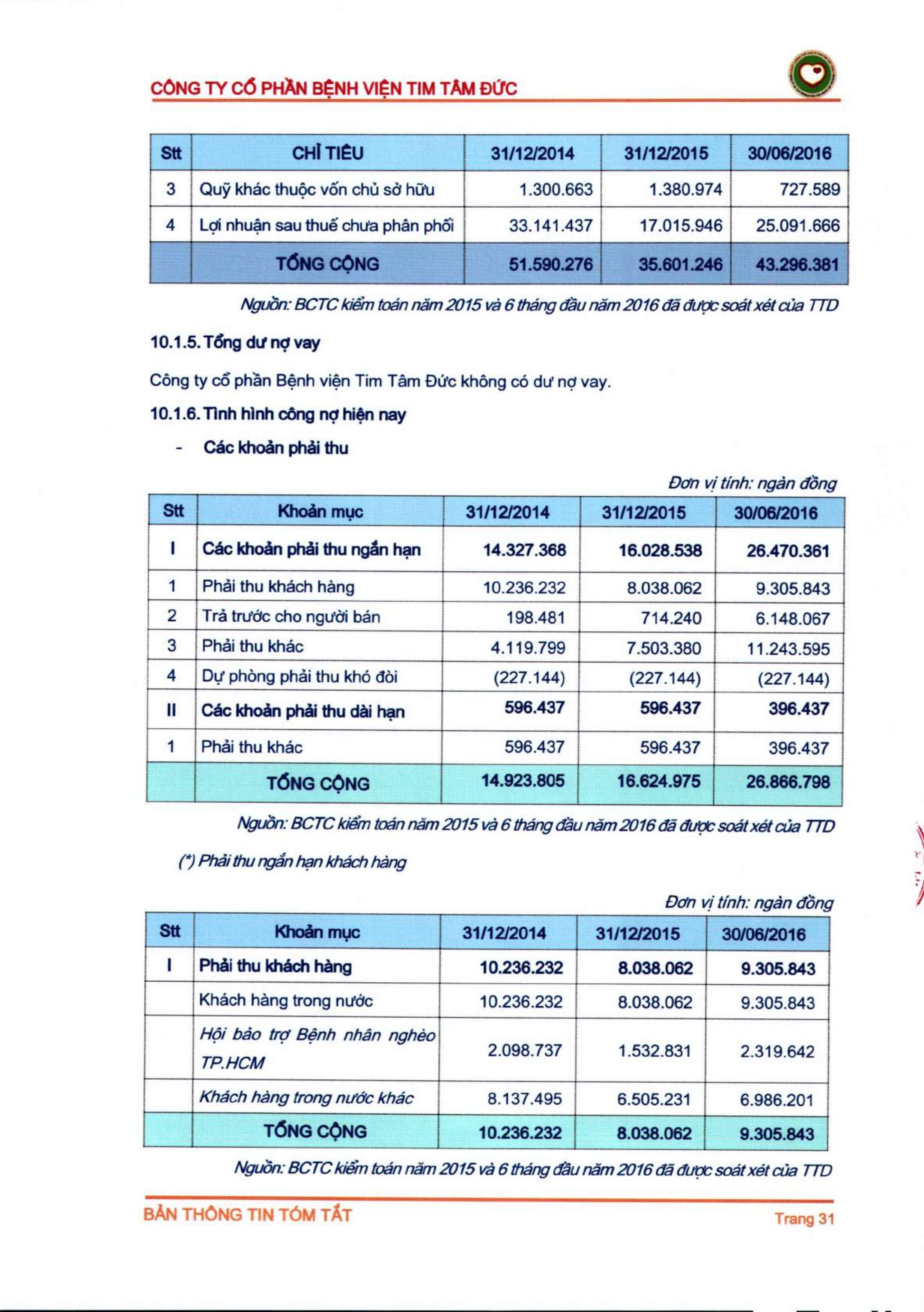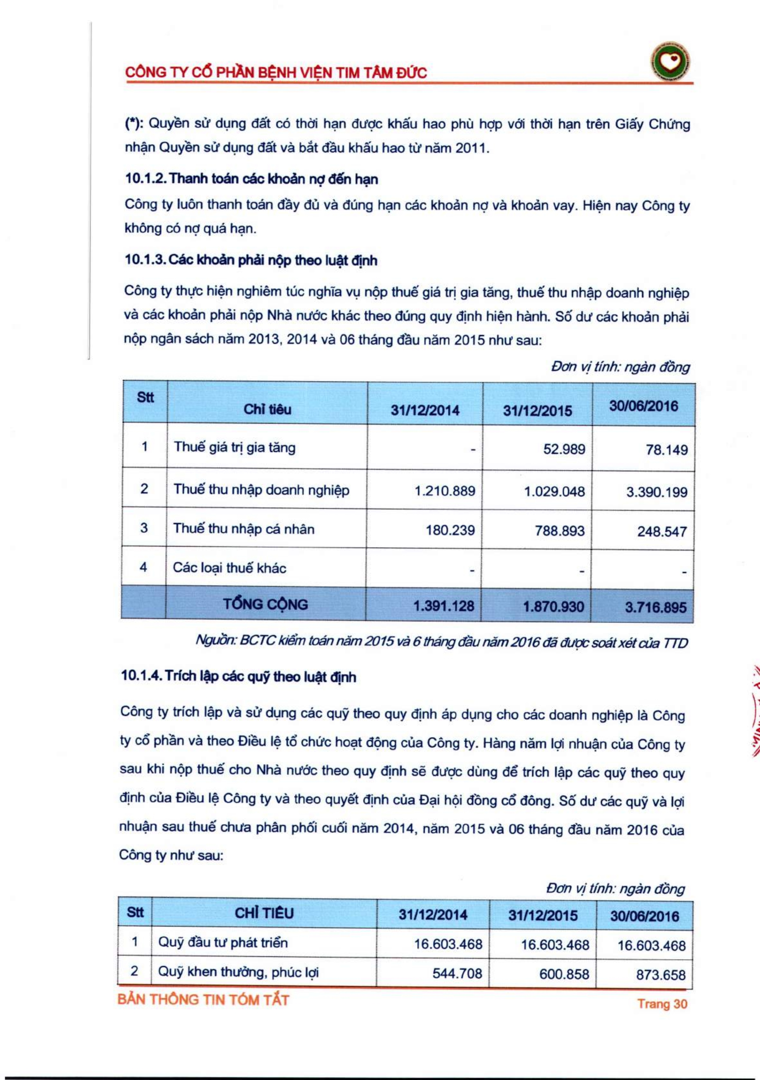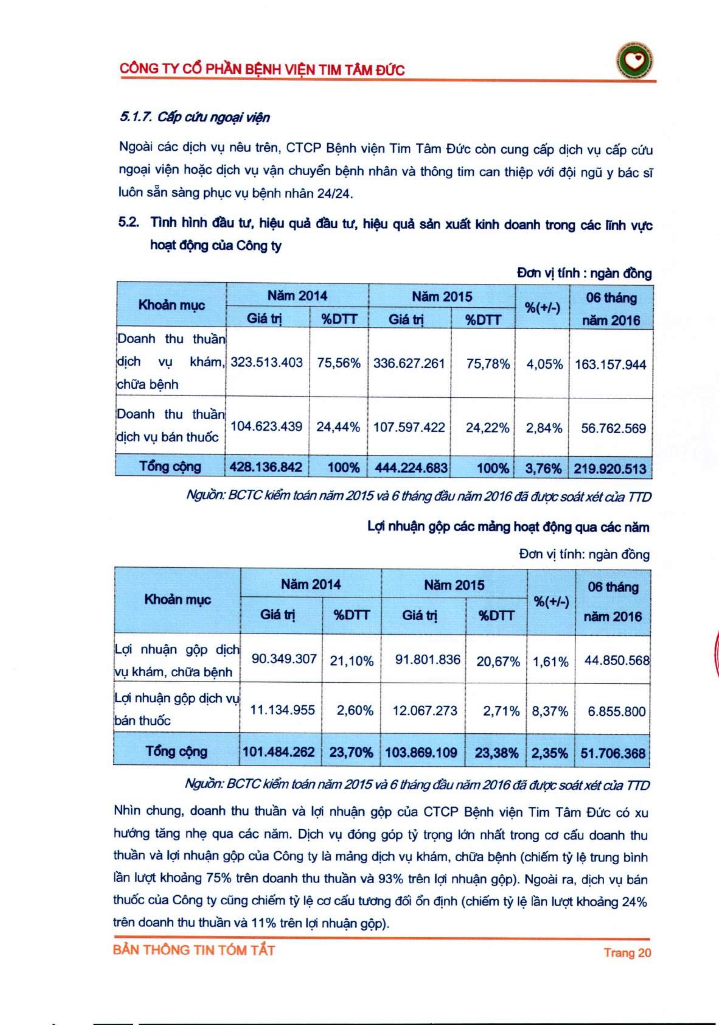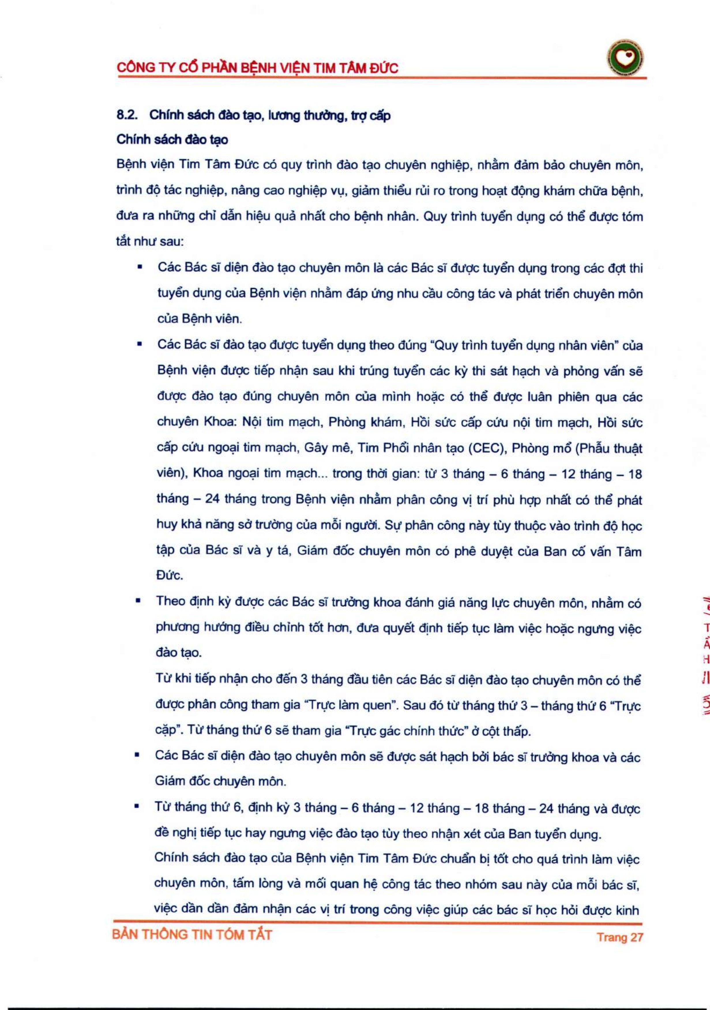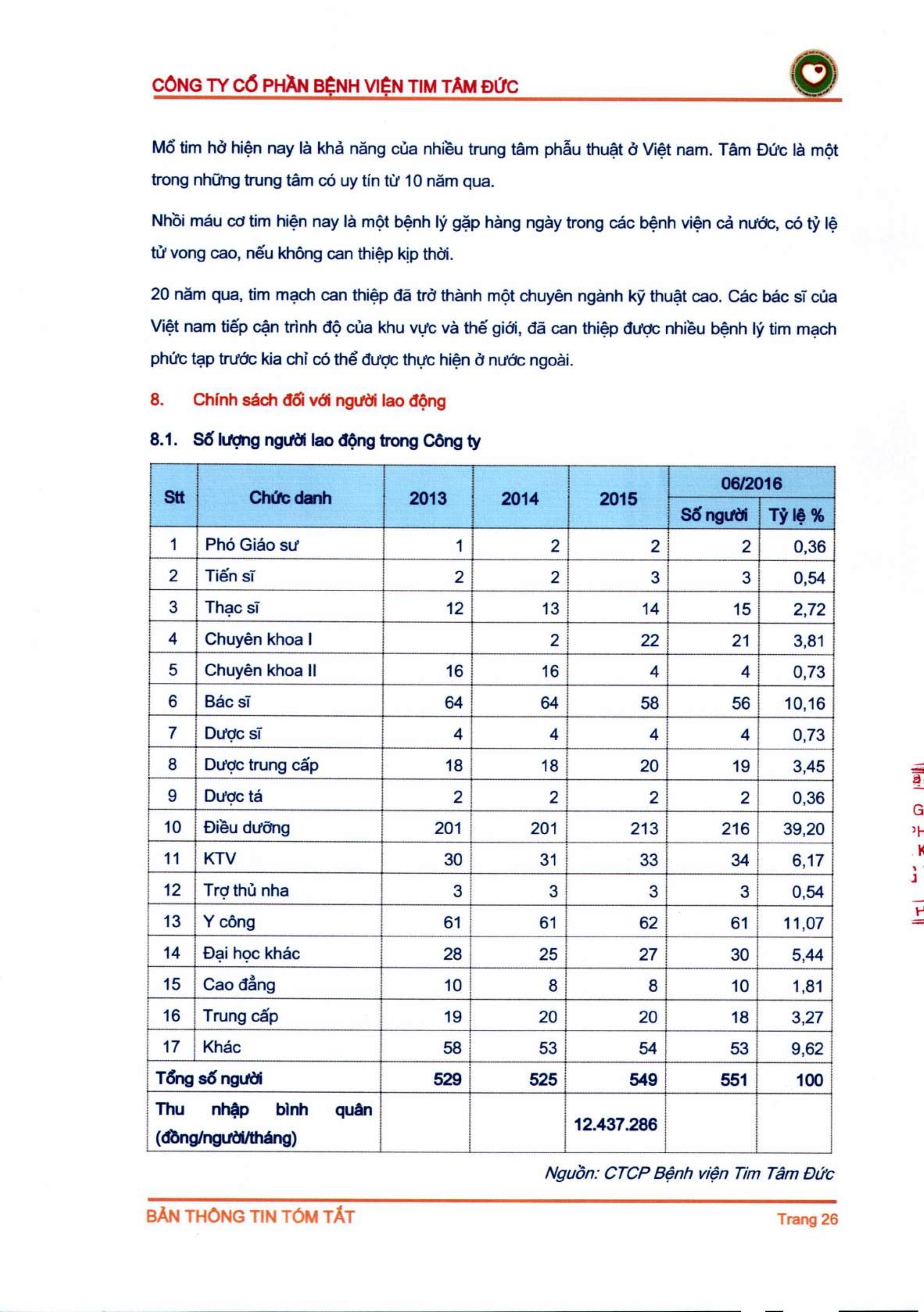 Thông tin tóm tắt về tổ chức đăng ký giao dịch Công ty CP Bệnh viện Tim Tâm Đức