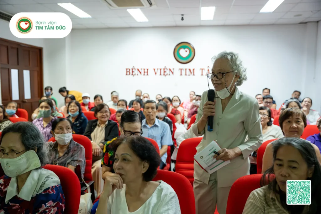 Mỗi câu hỏi được bác sĩ dẫn dắt bằng những ví dụ thực tế trong điều trị hằng ngày. Điều này khiến không khí hội trường trở nên sôi nổi, nhiều tiếng cười và đầy sự kết nối. Nhờ cách truyền đạt giản dị, dí dỏm mà sâu sắc, người bệnh cảm thấy được lắng nghe, thấu hiểu và tự tin hơn trong hành trình chăm sóc trái tim của mình.